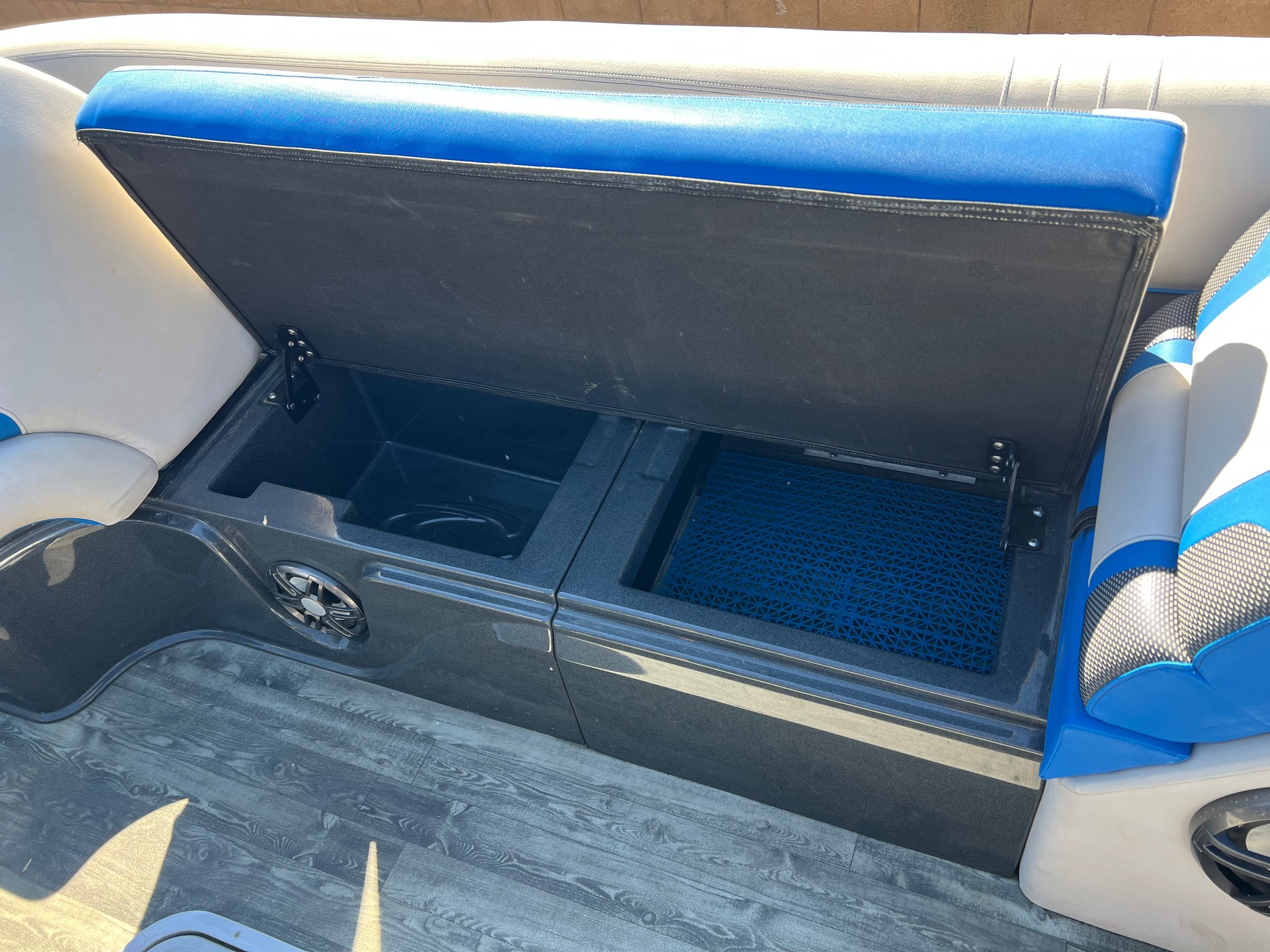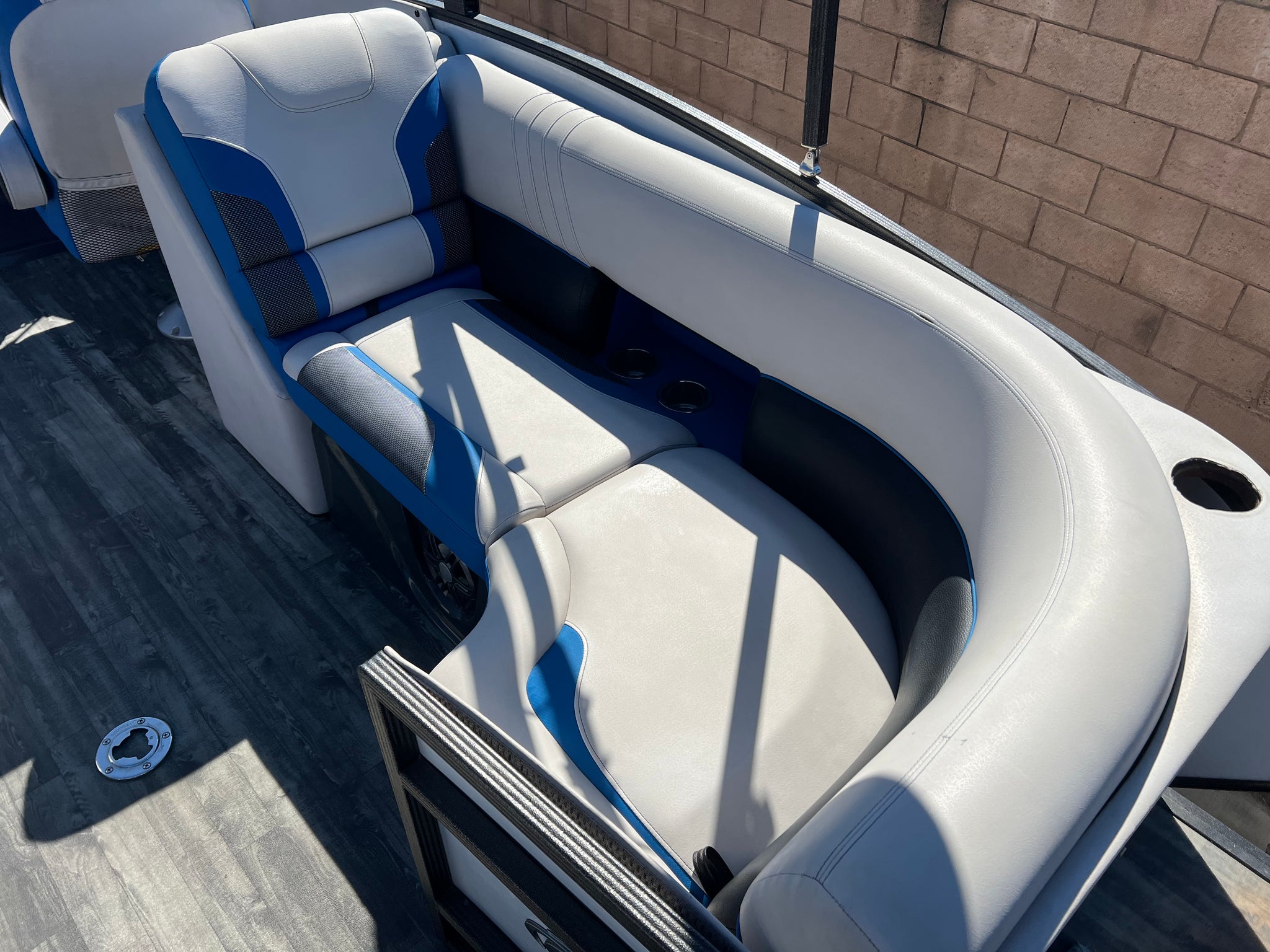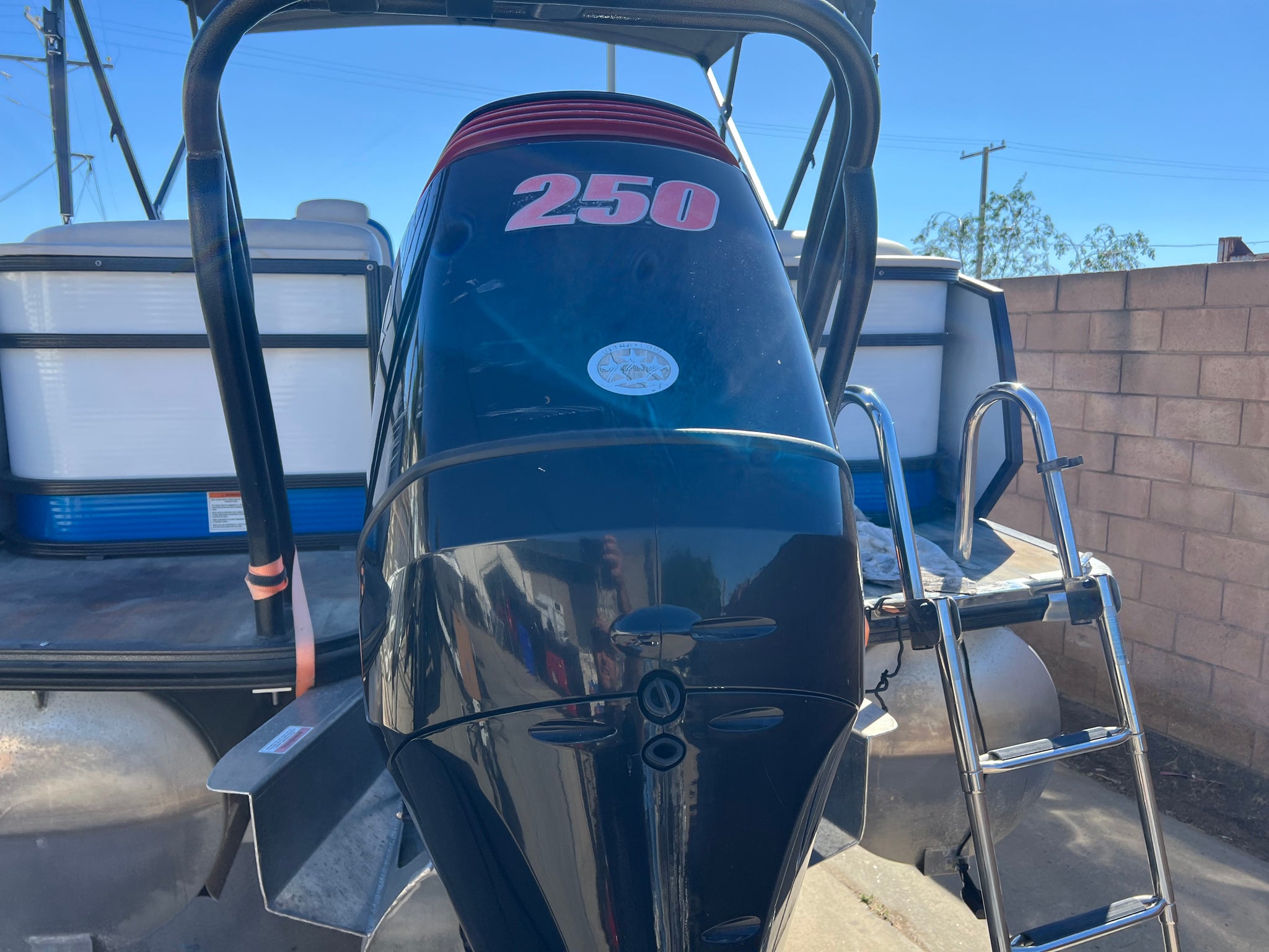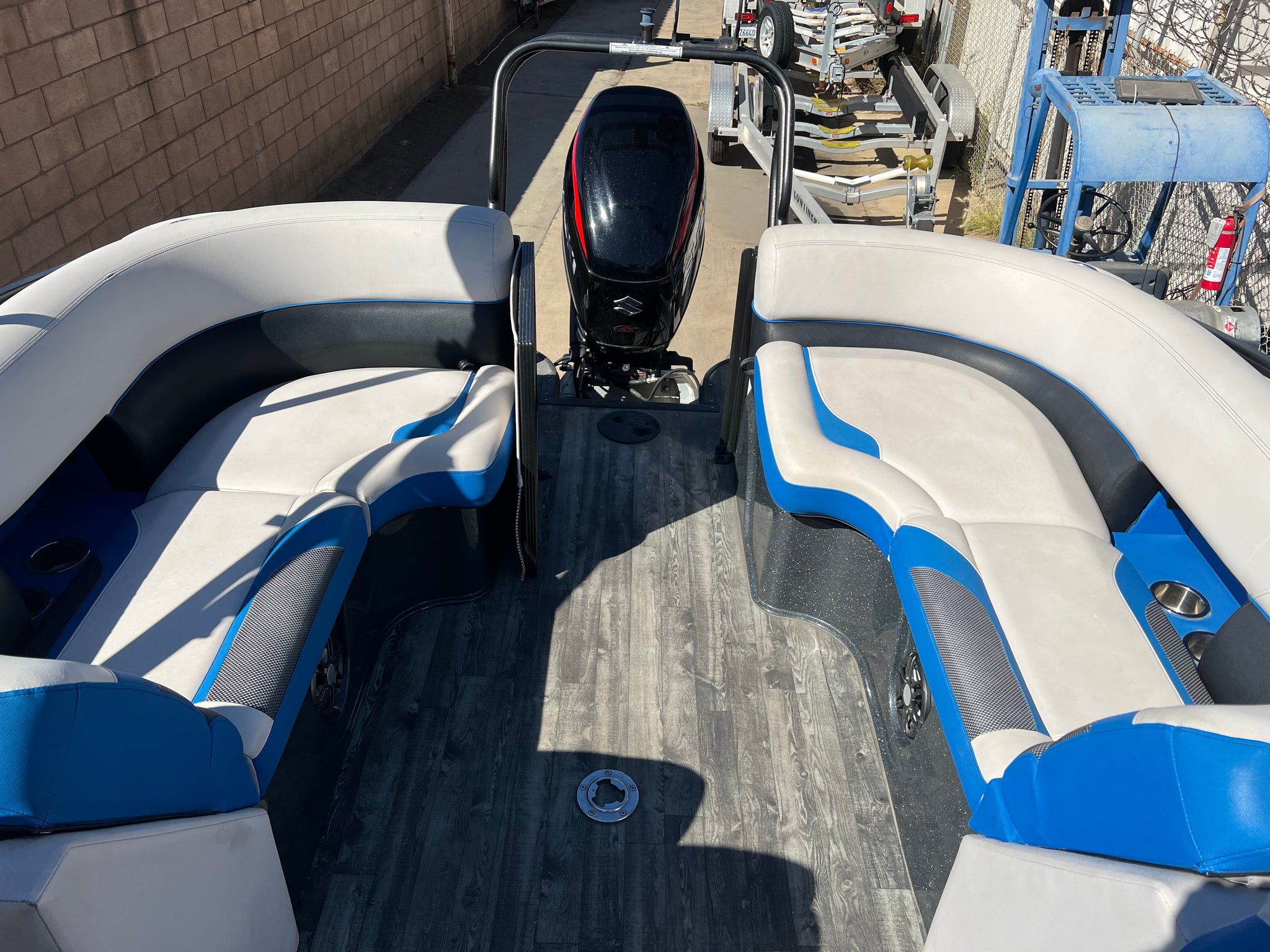 2020 Crest Caribbean (built by MasterCraft) 250 RS Pontoon Tri-toon with 250 hp Suzuki with only 60 hours on it. Huge bimini top, center floor storage, nice sound system, power steering, aluminum underskin, full boat cover, aluminum tandem trailer with disc brakes, roomy layout with comfortable seating, a great buy for a boat this size. Stored inside our warehouse and shown by appointment. Much nicer than a Tracker. Good competition for a Barletta.