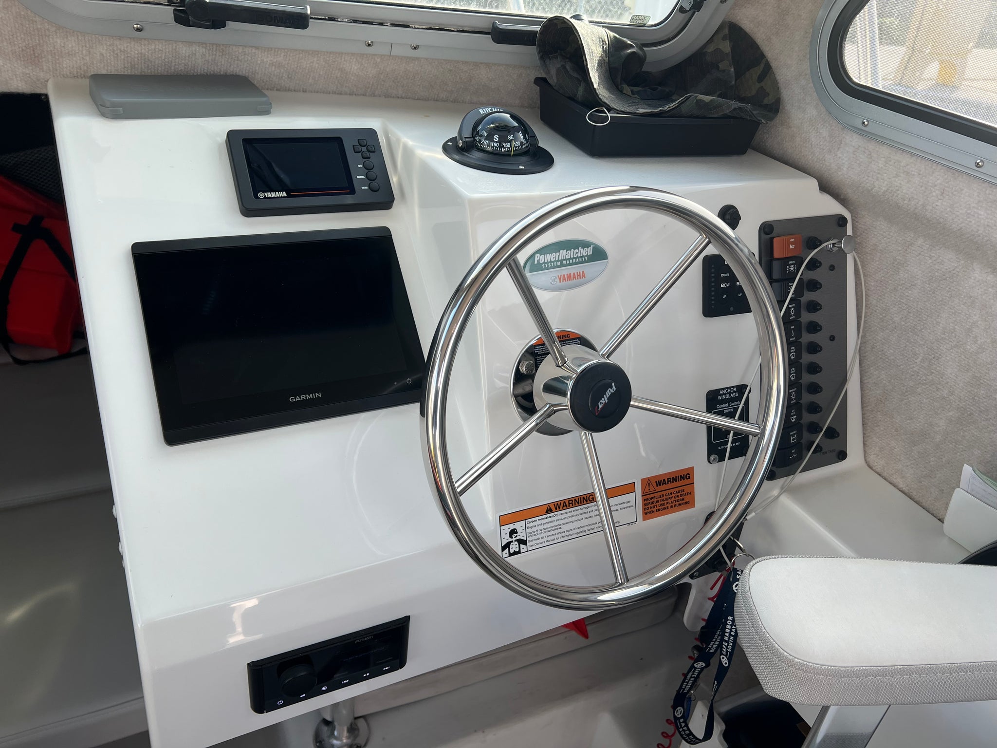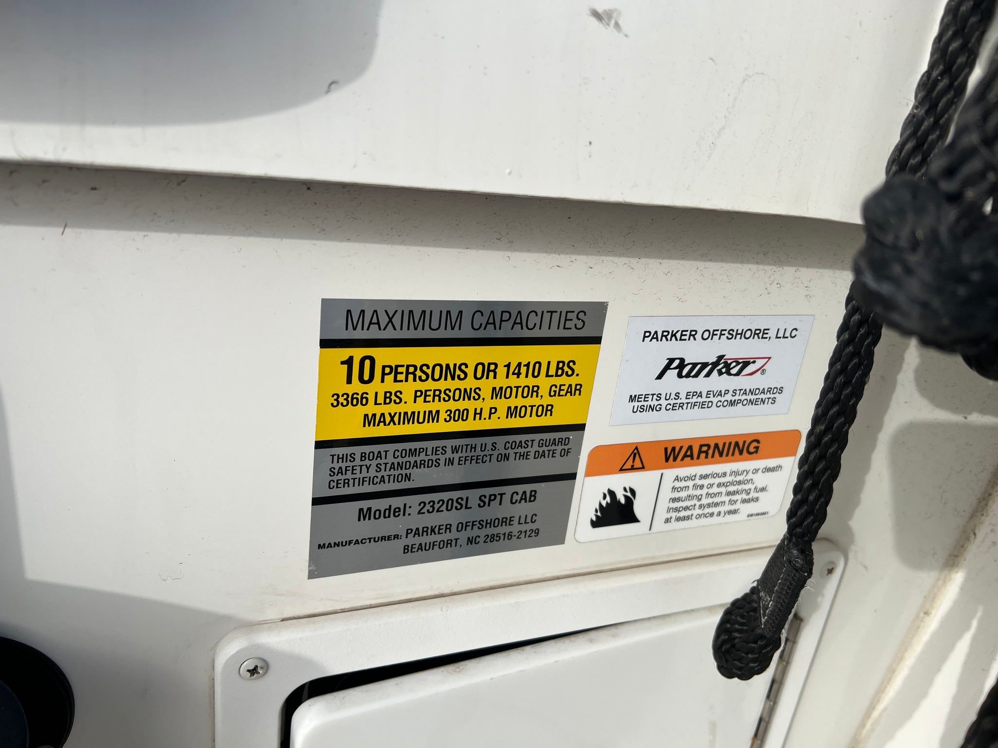 2022 Parker 2320 SL with Yamaha 225 4 stroke, 208 hours, factory transom bait well plus huge in cockpit bait tank, Garmin MFD with Radar, Fusion BT stereo, Lenco trim tabs with indicators, electric anchor windlass, high bow rail, rod holders, pop up cleats, 3 batteries with onboard charger, slip is available as well. Call to set up a time to check this one out.
